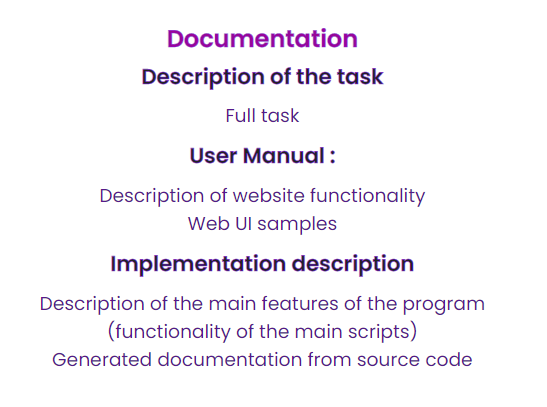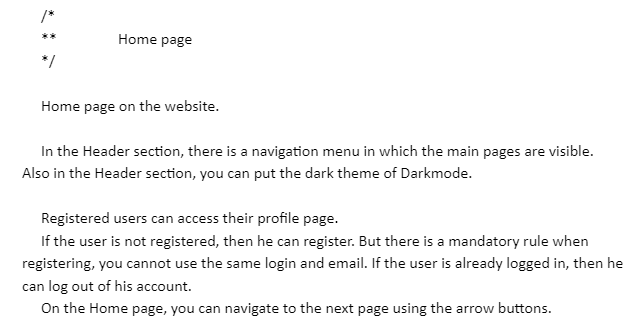 Description of website functionality — V tomto dokumentu jsem přidal screenshot hlavní stránky (ale myslím, že to není nutné). Hlavně je potřeba napsat k čemu váš web je a popsat funkce stránek. Měl jsem jich asi 20.