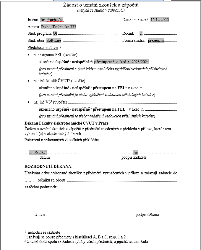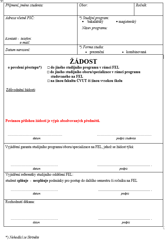 Потом надо написать заявления о переводе (скачать тут, если мы говорим о FEL). Данное заявление необходимо подать не позднее, чем за 30 дней до начала соответствующего семестра.
