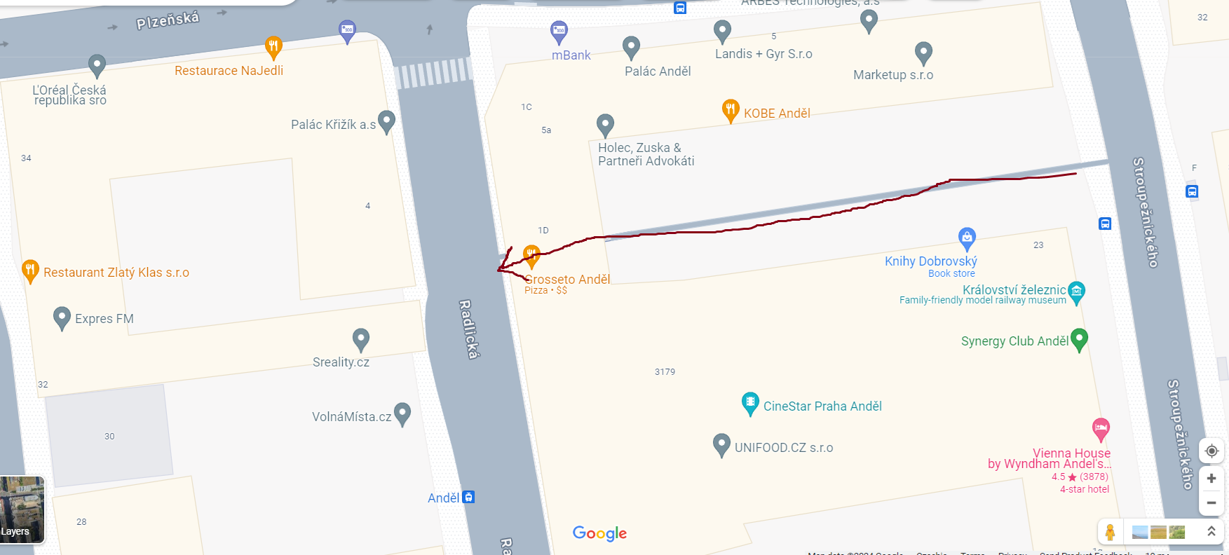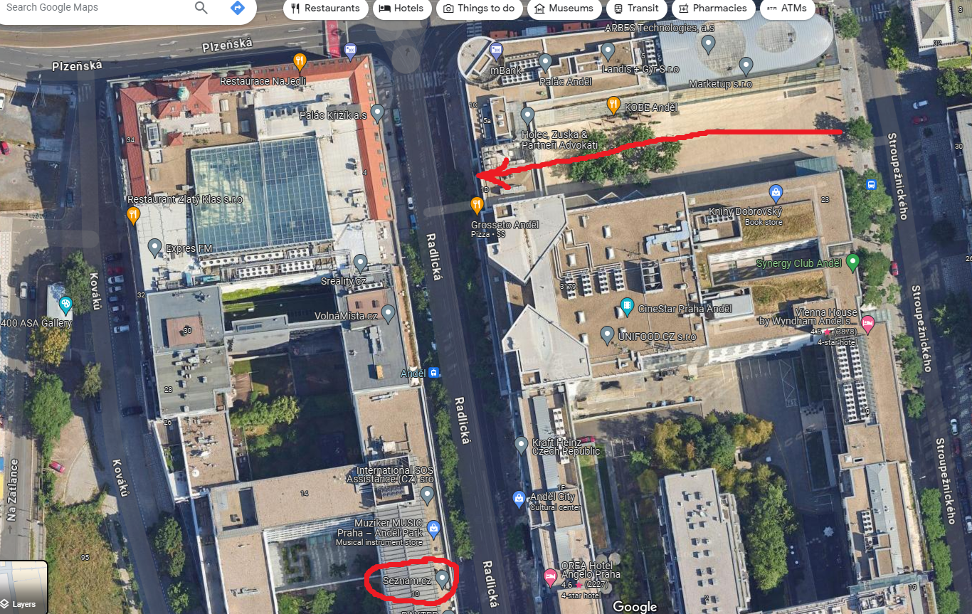 Если вы приедете на 191 автобусе на Andel, то с остановки идете в направлении к Seznam.