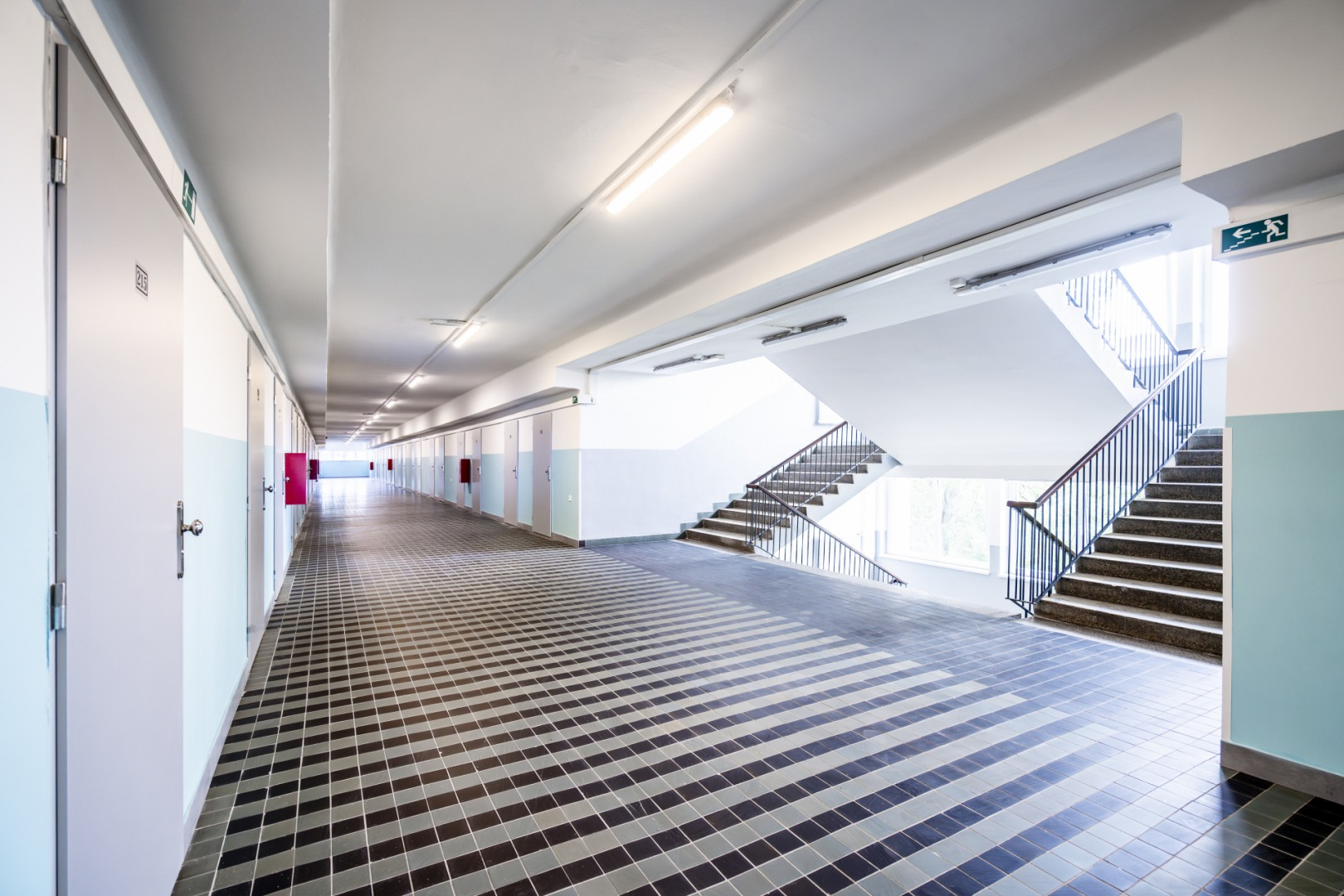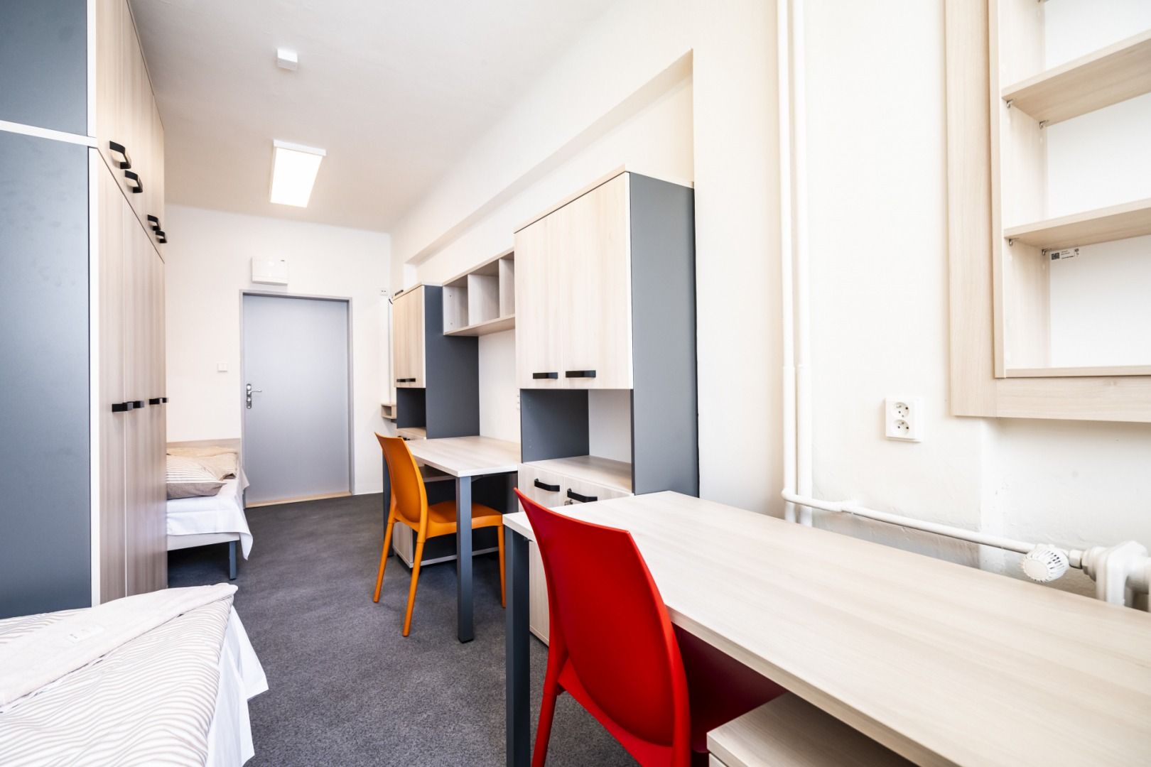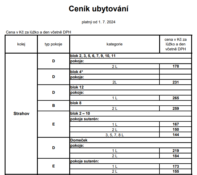 В данных блоках стандартные страговские комнаты. В основном это 2-местные комнаты, они довольно тесные и имеют вытянутую форму. Санузел и туалет расположены на этаже с двух сторон, имеются также две общие кухни на этаже.