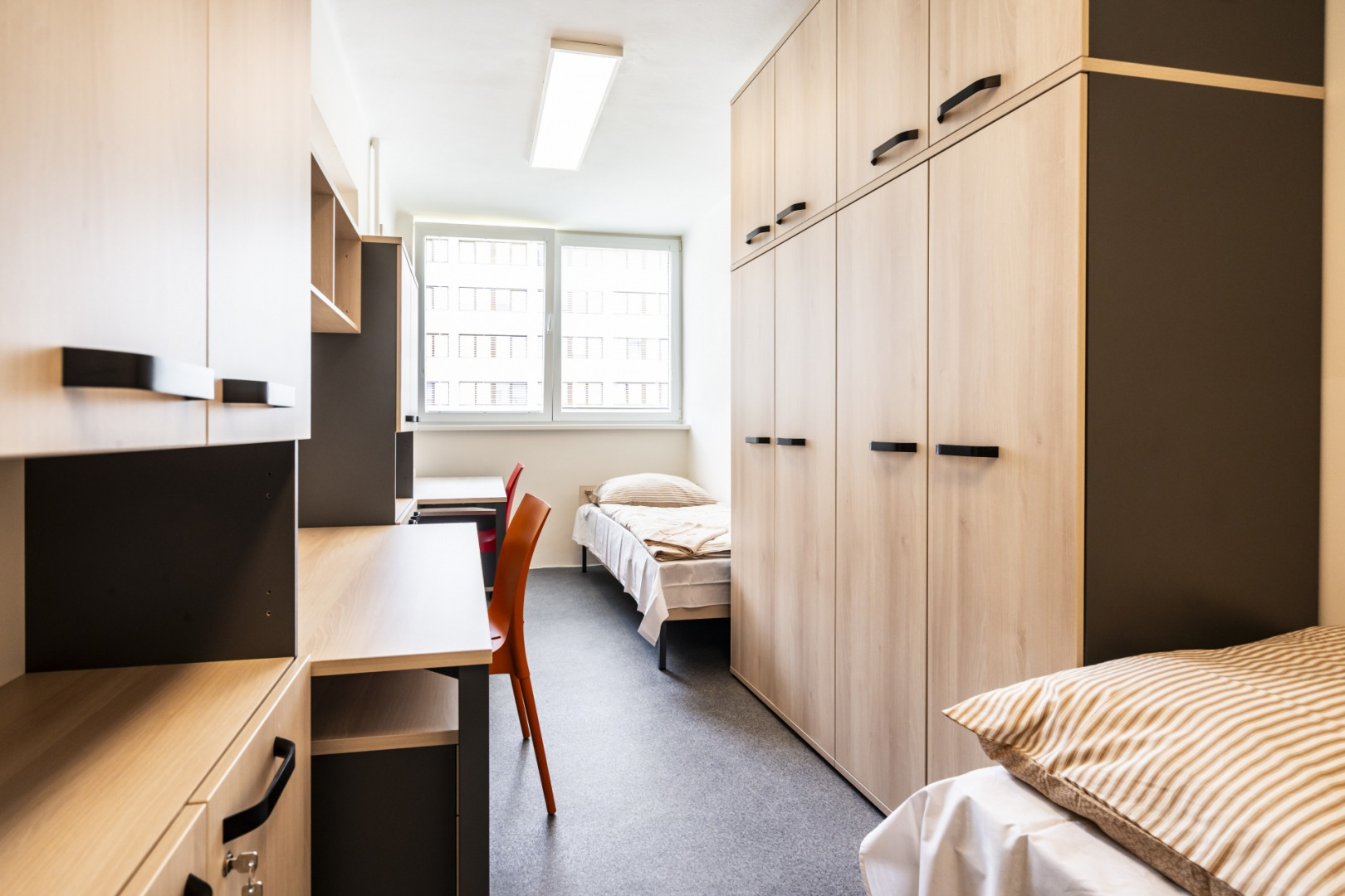 То есть цена за ночь для студентов в стандартной комнате — 115 крон, для остальных — 178 крон. В среднем в месяц для студентов цена — 3600 крон, для остальных — 5490 крон. В стоимость добавлена цена за электричество 150 крон.
