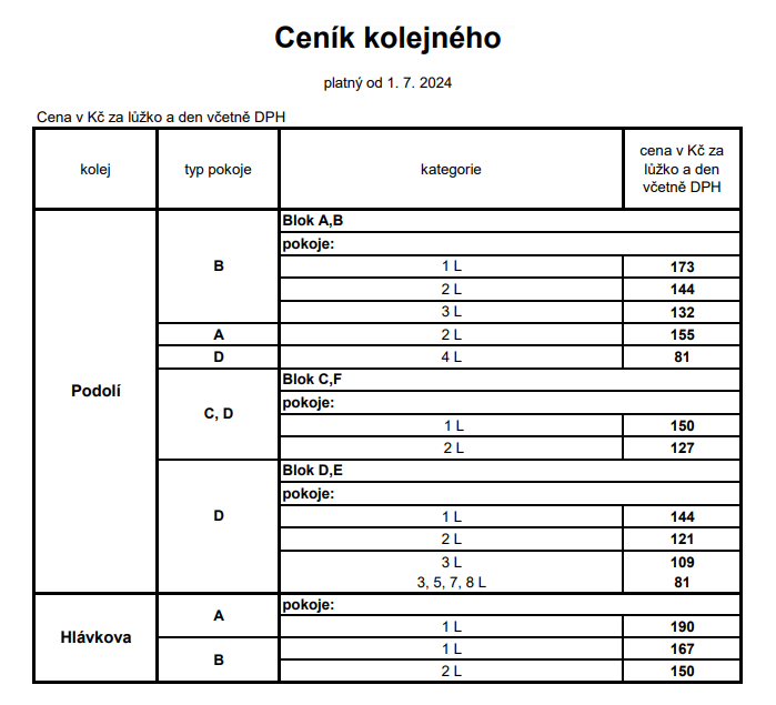 Есть две цены, для студентов и для остальных. Для студентов проживание дешевле.